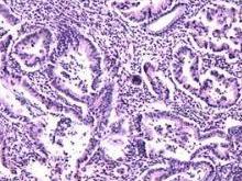 宫颈腺癌来自宫颈管并浸润宫颈管壁,宫颈腺癌较鳞癌少见,以往报道宫颈腺癌占宫颈鳞癌的15%~20%。宫颈腺癌可发生于18~84 岁妇女,其平均发病年龄在49岁左右,多发生于更年期妇女。[1]