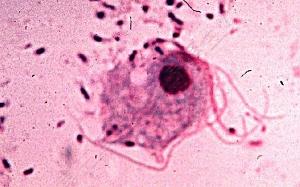 阴道毛滴虫病(滴虫性阴道炎)是妇科常见病,由阴道毛滴虫引起。滴虫通过性交直接传给女方,在男方尿道及前列腺分泌物中,可以找到同种类型的滴虫。滴虫不仅寄生于阴道内,也可寄生于泌尿道下部(尿道及尿道旁腺)及子宫颈管内。临床上滴虫带菌者可不出现任何症状。寄生在阴道内的滴虫能消耗阴道内的糖原,改变阴道的酸碱度,破坏防御机制,容易继发感染。