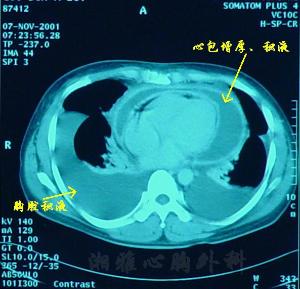心包炎是指心包因细菌、病毒、自身免疫、物理、化学等因素而发生急性炎性反应和渗液,以及心包粘连、增厚、缩窄、钙化等慢性病变。临床上主要有急性心包炎和慢性缩窄性心包炎。患者有发热、盗汗、咳嗽、咽痛或呕吐、腹泻等症状。心包渗出大量积液可发生急性心包填塞症状。患者胸痛、呼吸困难、发绀、面色苍白,甚至休克。还可有腹水、肝大等症状。[1]