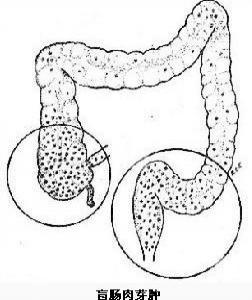 盲肠肉芽肿有盲肠阿米巴肉芽肿和回盲部血吸虫病性肉芽肿盲肠阿米巴肉芽肿是一种溶组织阿米巴原虫E(Entamaeba Histolytica)所致的慢性结肠炎的并发症。回盲部血吸虫病性肉芽肿系肠道血吸虫病的一种晚期病变,血吸虫卵沉积部位除结肠外主要是回肠末段。可并发急性肠梗阻等疾病。