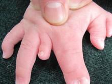 多指畸形,多指畸形(polydactyly)又称重复指,是指正常手指以外的手指、手指的指骨、单纯软组织成分或掌骨等的赘生,是临床上最常见的手部先天性畸形,男性高于女性,男女比例为3∶2,右手多于左手,比例为2∶1,双手发病约占10%,拇指多指发病率约占总数的90%以上。[1]