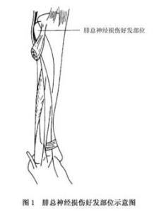 腓总神经卡压症是指腓总神经及其主要分支受压而引起的一系列症状和体征的症候群。腓总神经完全性损伤的患者足下垂行走时呈跨越步,小腿外侧及足背感觉障碍,伸拇、伸趾、足背伸、足内外翻障碍,小腿前外侧肌群萎缩。