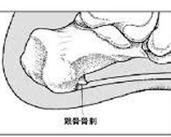 由于牵拉骨膜上的足底筋膜引起的跟骨下区域的足跟痛,在X线上有或无骨刺表现。骨刺是由于足底筋膜在跟骨的附着处过度牵拉骨膜所致。过度牵拉引起足底筋膜内缘的疼痛(足底筋膜炎)。导致跖筋膜紧张的病变有平足及跟腱挛缩。