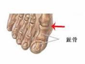 是第1跖趾关节的骨关节炎。极为常见,常由于第1跖骨位置变异引起,由于踝过度内转(旋前),趾向外偏(鉧外翻),第一跖骨背屈(高位跖骨),或第一跖骨长度增加或向内偏所致,偶尔外伤也是一个原因。