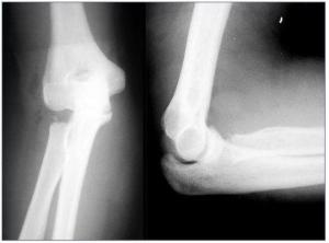 桡骨头骨折是成年人容易发生的肘部损伤,多为在平地跌倒或体育运动时致伤,通常疼痛症状较轻。人在跌倒时,肘关节伸直并在肩关节外展位手掌着地,使肘关节置于强度的外翻位,导致桡骨头猛烈地撞击肱骨小头,引起桡骨头骨折。