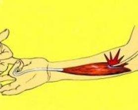 本病又称桡弓综合征、旋后肌综合征、骨间背侧神经卡压痛。是桡神经深支在桡管内被旋后肌浅层腱弓或桡侧腕短伸肌起腱弓卡所致。起病缓慢,可逐渐发生伸掌指关节,伸拇,外展拇指无力,伸腕偏向桡侧,原因是尺侧伸腕肌受累,桡侧腕伸肌完整。无感觉异常,无疼痛。本病中指试验阳性,检查时令肘、腕、指间关节伸直,抗阻力伸直掌指关节诱发桡侧腕短伸肌起点内侧缘疼痛为阳性。网球肘疼痛出现于内上髁上下。手术需探查骨间背侧神经常见的卡压点,包括桡骨头前方,桡侧腕短伸肌弓和旋后肌的Frohse弓。[1]