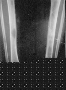 纤维性骨炎[1]是由于慢性肾衰继发性甲状旁腺功能亢进,引起的高转运型骨病。主要病因是继发性甲状旁腺功能亢进,使甲状旁腺增生、功能亢进,导致患者低血钙、高血磷,特别是二羟胆骨化醇的缺乏,晚期骨骼病变,皮肤瘙痒,自发性肌腱断裂,软组织钙化等。临床上主要表现为纤维性骨炎的病理改变。