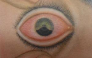 赤膜下垂,又名“垂帘障”,类似沙眼性角膜血管翳,本病多是椒疮(砂眼)失治或调治失宜,再加心,肺,肝诸经风热、内火,致瘀血凝滞所致。主要症状是整排的细小血管自白睛上方向下侵入黑睛,患者常有目痒流泪,羞明畏光。重症可畏至瞳孔,翳膜菲薄。[1]