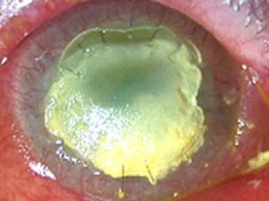 铜绿假单胞菌性角膜炎(pseudomonas keratitis)是一种极为严重的急性化脓性角膜溃疡,具有典型革兰阴性杆菌所引起的环形脓肿的特征,常在极短时间内席卷整个角膜而导致毁灭性的破坏,后果极其严重。一经发生,必须立即抢救。
