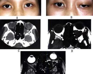 静脉曲张是发生于眼眶内常见的静脉畸形性扩张。病变为一条或多条或囊状扩张的静脉构成,病变常包绕眼眶正常结构,如视神经、眼外肌等,血管腔大而壁薄,较大血管含有弹性纤维,畸形血管内可见血栓形成,可钙化形成静脉石。本病虽为先天性血管异常,一般在青少年时期才出现症状,缺乏性别倾向,多侵犯一侧眼眶,偶有发生于两侧眼眶者。