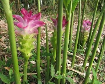 郁金,别名:桂郁金;黄郁金;紫蒁香;绿郁金;玉金;广郁金;白丝郁金; 入金; 乙金;温郁金; 川玉金;川郁金;广玉金;黑郁金; 光郁金; 马蒁;黄丝玉金; 醋郁金。多年生宿根草本。根粗壮,末端膨大成长卵形块根。块茎卵圆状,侧生,根茎圆柱状,断面黄色。功能主治行气解郁,凉血破瘀。治胸腹胁肋诸痛,失心癫狂,热病神昏,吐血,衄血,尿血,血淋,妇女倒经,黄疸。分布江苏、浙江、福建、广东、广西、江西、四川、云南等地。[1]