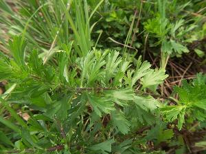 [1]牡蒿为多年生草本;茎直立,高30~100厘米,无毛或稍被蛛丝状毛。单叶互生,无柄,茎生叶或具1~2枚假托叶,茎中部以下的叶匙形,基部楔形,顶端多羽状3裂,中间裂片较宽,再作羽状3裂;