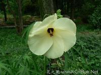 黄蜀葵,别名:秋葵、棉花葵、假阳桃、野芙蓉、黄芙蓉、黄花莲、鸡爪莲、疽疮药、追风药、豹子眼睛花、荞面花,拉丁文名:Abelmoschus manihot (Linn.) Medicus ,锦葵科、秋葵属一年生或多年生粗壮直立草本植物。茎被黄色刚毛。叶大,卵形至近圆形。花期6~8月。原产我国南方。常生于山谷草丛、田边或沟旁灌丛间。分布于印度。 黄蜀葵不仅可以入药,还可以从茎秆中提炼植物胶作为食品添加剂,在食品工业中可用做增稠剂、稳定剂和乳化剂,它可用于冰淇淋、雪糕、冰棍和面包、饼干、糕点、果酱等食品的制作中。图片均取自中国植物图库。