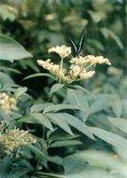 为多年生灌木状忍冬科草本,高达3m。根茎横生,圆柱形,黄白色,节上生根。茎具纵棱,幼枝有毛,髓部白色。羽状复叶对生,长椭圆状披针形,先端渐尖,基部偏斜稍圆至阔楔形,边缘有细密的锐锯齿,揉之有臭气。复伞房花序顶生;花小,两性,花间杂有不发育的倒杯状肉质花(黄色腺体);花萼5裂;花冠白色或乳白色,裂片5;雄蕊5;子房下位,3室,柱头头状或3浅裂。浆果状核果卵形,成熟时红色至黑色,果核表面有小瘤状突起。花期4~5月,果期8~9月。生于山坡、路旁、溪边、荒野灌丛中。产于长江以南地区。