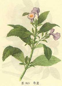 马蓝属于爵床科(Acanthaceae),为植物马蓝Strobilanthescusia(Nees)Ktze.的干燥根和根茎。生于山坡、路旁、草丛及林边潮湿处。分布于浙江、江西、湖南、西南及华南等省区,南方有培。夏、秋两季均可采收,晒干。马蓝叶主要抗癌成分为靛玉红(indirubin)及靛甙(即吲哚甙,indican),另含异靛蓝(isoindigo)等。[1]