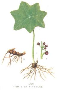 八角莲,又叫:金魁莲、旱八角,拉丁文名:Dysosmaversipellis(Hance)M.ChengexYing属于小檗科、鬼臼属植物,花期为春末,花苞由两个叶柄交叉处生出,常常是数朵簇生,花苞下垂开出紫红色花朵,其特殊盾形掌状的叶片是认识它的标记,观察是否有花苞开出,可以观察是否有两片叶子!八角莲生育环境分布于海拔1000公尺至2500公尺,常见于阴湿的阔叶林间,是民间常用的中草药,入药能散风祛痰,消毒解肿,杀虫,有其特殊的解毒功效,可治蛇咬伤,现已被列为国家保护植物。