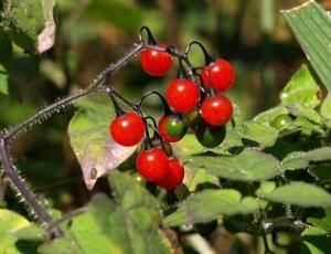 白英(Solanum lyratum Thunb.)为茄科草质藤本,叶互生,多数为琴形,两面均被白色发亮的长柔毛,聚伞花序顶生或腋外生,疏花,花冠蓝紫色或白色,花期夏秋,果熟期秋末。浆果球状,成熟时红黑色。喜温暖湿润的环境,生于山谷草地或路旁、田边;药用历史久远,最早见于《神农本草经》记载,列为上品,为传统中药。药用全草,具有清热利湿、解毒消肿之功效,用于治疗黄疸、水肿、淋病、胆囊炎、胆结石、风湿性关节炎等症。