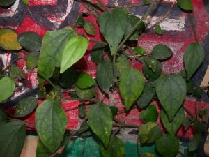 藤本,茎攀援,有节,光滑无毛。叶互生,革质;叶柄长1~2厘米;叶片椭圆形或狭椭圆形,长7~11厘米,宽3.5~5.5厘米,先端渐尖或骤尖,墓部圆楔形,全缘,上面无毛,有光泽,叶脉不显,下面被毛,叶脉5条,显著。花雌雄异株;穗状花序,长4~7.5厘米,下垂,总花梗比叶柄长,花甚小,密集;苞片盾状,光滑;雄蕊2枚,花药肾形。浆果,无柄,离生,集成穗状,果穗长短不一,果实在幼时和干时呈金字塔形,成熟时,直径约2毫米。花期6月。果期7~8月。