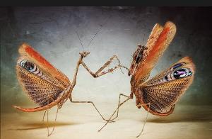 螳螂,无脊椎动物,昆虫纲,螳螂目昆虫的总称。身体中型或较大,头部倒三角形,复眼大而明亮,触角细长;颈可自由转动。体呈黄褐色、灰褐色或绿色。胸部具有翅2对、足3对;前胸细长,前足为1对粗大呈镰刀状的捕捉足,并在腿节和胫节上生有钩状刺,用以捕捉害虫,故为益虫。