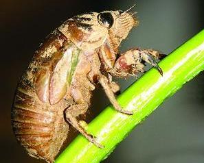 异名:鸣蜩、马蜩、蟧、鸣蝉、秋蝉、蜘蟟、蚱蟟和知了等等。黑蚱 ,雄虫体长而宽大,长4.4~4.8厘米,翅展12.5厘米,雌虫稍短;黑色,有光泽。头部横宽,中央向下凹陷,颜面顶端及侧缘淡黄褐色。复眼1对,大而横宽,呈淡黄褐色;单眼3个,位于复眼中央,排列呈三角形。触角短小,位于复眼前方。