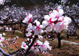 杏花---杏树的花。三四月展叶前开放,花形与桃花和梅花相仿。杏花有变色的特点, 含苞时纯红色,开花后颜色逐渐变淡,花落时变成纯白色。初夏成熟。杏树原产中国,分布很广。树龄长,可活一百年以上,既能采果又能赏花,在果木生产和城市美化上都处重要地位。