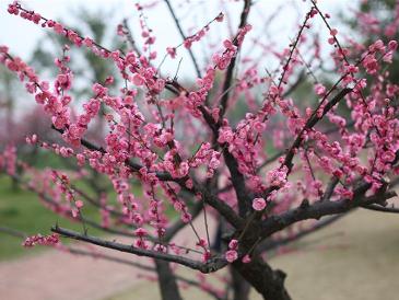 梅(学名:Armeniaca mume Sieb.):小乔木,稀灌木,高4-10米;树皮浅灰色或带绿色,平滑;小枝绿色,光滑无毛。叶片卵形或椭圆形,叶边常具小锐锯齿,灰绿色。花单生或有时2朵同生于1芽内,直径2-2.5厘米,香味浓,先于叶开放;花萼通常红褐色,但有些品种的花萼为绿色或绿紫色;花瓣倒卵形,白色至粉红色。果实近球形,直径2-3厘米,黄色或绿白色,被柔毛,味酸;果肉与核粘贴;核椭圆形,两侧微扁。花期冬春季,果期5-6月。2n=16,24。 梅原产中国南方,已有三千多年的栽培历史,无论作观赏或果树均有许多品种。许多类型不但露地栽培供观赏,还可以栽为盆花,制作梅桩。鲜花可提取香精,花、叶、根和种仁均可入药。果实可食、盐渍或干制,或熏制成乌梅入药,有止咳、止泻、生津、止渴之效。梅又能抗根线虫危害,可作核果类果树的砧木。 梅花是中国十大名花之首,与兰花、竹子、菊花一起列为四君子,与松、竹并称为“岁寒三友”。在中国传统文化中,梅以它的高洁、坚强、谦虚的品格,给人以立志奋发的激励。在严寒中,梅开百花之先,独天下而春。