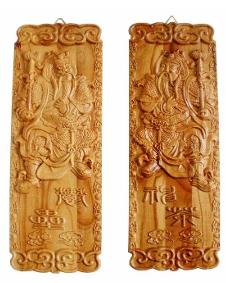 古人在辞旧迎新之际,用桃木板分别写上“神荼”、“郁垒”二神的名字,或者用纸画上二神的图像,悬挂、嵌缀或者张贴于门首,意在祈福灭祸。这就是最早的桃符。据说桃木有压邪驱鬼的作用。