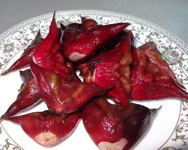 [1]菱角(Trapa bicornis)又名腰菱、水栗、水栗子、菱实,是一年生草本水生植物菱的果实。菱角味甘、平、无毒,皮脆肉美,蒸煮后剥壳食用,亦可熬粥食。《本草纲目》记载:“菱角能补脾胃,强股膝,健力益气,菱粉粥有益胃肠,可解内热,老年人常食有益。”古人认为多吃菱角可以补五脏,除百病,且可轻身,所谓轻身,就是有减肥健美作用,因为菱角不含使人发胖的脂肪。菱角含有丰富的蛋白质、不饱和脂肪酸及多种维生素和微量元素,具有利尿通乳,止渴,解酒毒的功效。菱角原产于欧洲,中国长江下游太湖地区和珠江三角洲栽培最多。