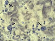 溶组织内阿米巴(痢疾阿米巴)(entamoeba ihstolytica Schaudinn,1930),主要寄生于结肠内,引起阿米巴痢疾或阿米巴结肠炎。痢疾阿米巴也是根足虫纲中最重要的致病种类,在一定条件下,并可扩延至肝、肺、脑、泌尿生殖系和其他部位,形成溃疡和脓肿。[1]