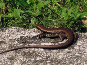 石龙子(释名: 泉龙、山龙子、石蜴、蜥蜴、猪婆蛇、守宫等)约1,275种蜥蜴的统称。虽然世界各热带地区(以及北美温带地区)皆有分布,但以东南亚及其附近岛屿上的种类为最多。典型者体呈圆柱形,头为圆锥形,尾长渐尖。最大者体长可达66公分(26吋),一般不及20公分(8吋)。多隐匿地下或穴居;活动的下眼睑上有一适应地下生活的透明鳞片,使其钻穴时既能视物又能避免粗糙粒子伤害眼睛。其他种类可能有肢体不发达或完全退化以及耳鼓凹陷等怪异特征,有些种类则树栖或营若干程度的水栖生活。以昆虫和类似昆虫的小型无脊椎动物为食,大型种类则以植物为食。卵生或卵胎生。