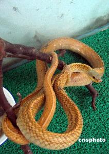 金蛇是一种具前沟牙的剧毒蛇,与眼镜蛇、灰鼠蛇合称“三蛇”。金环蛇栖息于海拔180—1014m的平原或低山,植被覆盖较好的近水处。怕见光线,白天往往盘着身体不动,把头藏于腹下,但是到晚上十分活跃,捕食蜥蜴,鱼类,蛙类,鼠类等,并能吞食其它蛇类及蛇蛋,性温顺,行动迟缓,其毒性十分剧烈,但是不主动咬人。