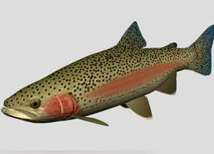 鳟鱼(Salmo playtcephalus),是一类很有价值的垂钓鱼和食用鱼,全世界大约有10种左右。鳟鱼是一群分类上属于鲑科鲑亚科的鱼类的俗名。所有被称为鳟鱼的鱼类都是鲑亚科的成员。鳟鱼原产于美国加利福尼亚的洛基塔山麓的溪流中。其品种很多,常见的有金鳟、虹鳟、湖鳟和三文虹鳟等品种,是西方人喜欢食用的鱼类。