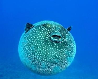 河豚,俗称“气泡鱼”、“吹肚鱼”、“河鲀鱼””、“气鼓鱼”(江苏、浙江)、“乖鱼”(广东)、“鸡抱”(广东)、“龟鱼”(广西)、“街鱼”(用闽南话读)(福建)、“蜡头”(河北)、“艇鮁鱼”。古时称“肺鱼”。一般泛指鲀形目中二齿鲀科、叁齿鲀科、四齿鲀科以及箱鲀科所属的鱼类。河豚为暖温带及热带近海底层鱼类,栖息于海洋的中、下层,有少数种类进入淡水江河中,当遇到外敌,腹腔气囊则迅速膨胀,使整个身体呈球状浮上水面,同时皮肤上的小刺竖起,借以自卫。