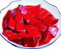 鹅血,别名家雁血,性平味咸,具有开噎解毒的功效。《本草求原》:“苍鹅血治噎膈反胃,白鹅血能吐胸腹诸血虫积。”,现代研究证明,鹅血能抑制小鼠艾氏腹水癌的形成,使癌细胞数量减少,发生溶解,病灶减小。鹅血中的抗癌因子不被人体消化道中的酸、碱、酶所破坏,其实是鹅血中一种低分子物质,具有较强的抗癌作用。国内有用鹅血干燥后制成鹅血片剂、冲剂、胶囊等,治疗食管癌、胃癌、肺癌、淋巴瘤、鼻咽癌等,有效率很高。此方宜于各种消化道癌。