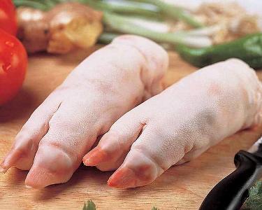[1]猪蹄(外文名:pig's trotters),是指猪的脚部(蹄)和小腿,在中国又叫元蹄,在华人世界中,猪蹄是猪常被人食用的部位之一,有多种不同的烹调作法。猪蹄含有丰富的胶原蛋白质,脂肪含量也比肥肉低,它能防治皮肤干瘪起皱、增强皮肤弹性和韧性,对延缓衰老和促进儿童生长发育都具有特殊意义。为此,人们把猪蹄称为“美容食品”和“类似于熊掌的美味佳肴”。挑选猪蹄需注意:颜色发白,个头过大,脚趾处分开是双氧水浸泡的化学猪蹄。