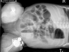 正常新生儿多在出生12h内初次排出胎粪,或可延至12~24h,极少数在24~48h才开始排便。若新生儿因胎粪稠厚、积聚在乙状结肠及直肠内,出生48h后尚未开始排便,出现一过性低位肠梗阻症状,称胎粪性便秘。新生儿胎粪性便秘是由于胎粪稠厚积聚在乙状结肠及直肠内,排出量很少,于出生后72小时尚未排完胎粪,表现为低位肠梗阻症状,如腹胀、拒奶,有时呕吐,腹部X线片显示小肠和结肠充气,或有胎粪颗粒影,肛门指检可触到秘结的胎粪,并可随手指带出胎粪,有时可使症状缓解,如胎粪不能顺利排出,可用等渗温盐水灌肠,每次15~30ml。也可用开塞露灌肠,每次5ml,大量胎粪排出后症状消失,不再复发。